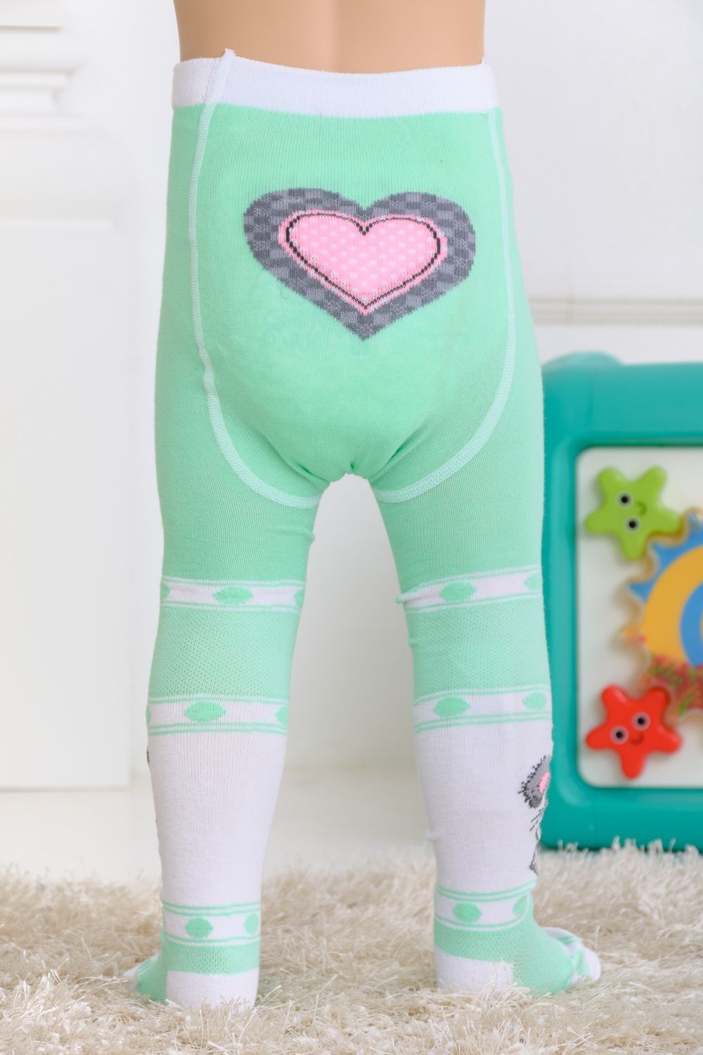 Милые колготки для самых маленьких. Нежные цвета - розовый и салатовый, спереди рисунок - симпатичный зайчик, сзади - сердечко