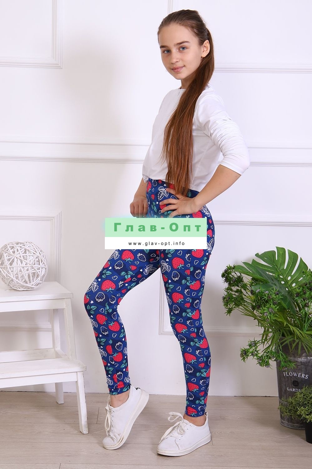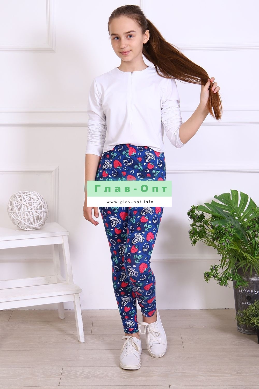 Леггинсы для девочек из трикотажного полотна кулирка с лайкрой, облегающие, длинные, сверху на резинке шириной 2.5 см. Низ и верх подогнуты.