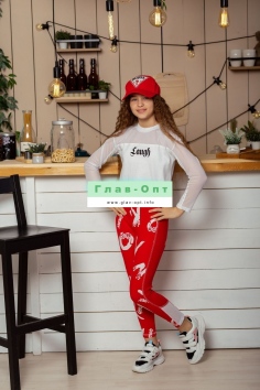 Лосины облегающие, длинные, сверху на резинке. Вдоль боковых швов расположен лампас со вставкой из сетки. Можно составить комплект с толстовкой 8230