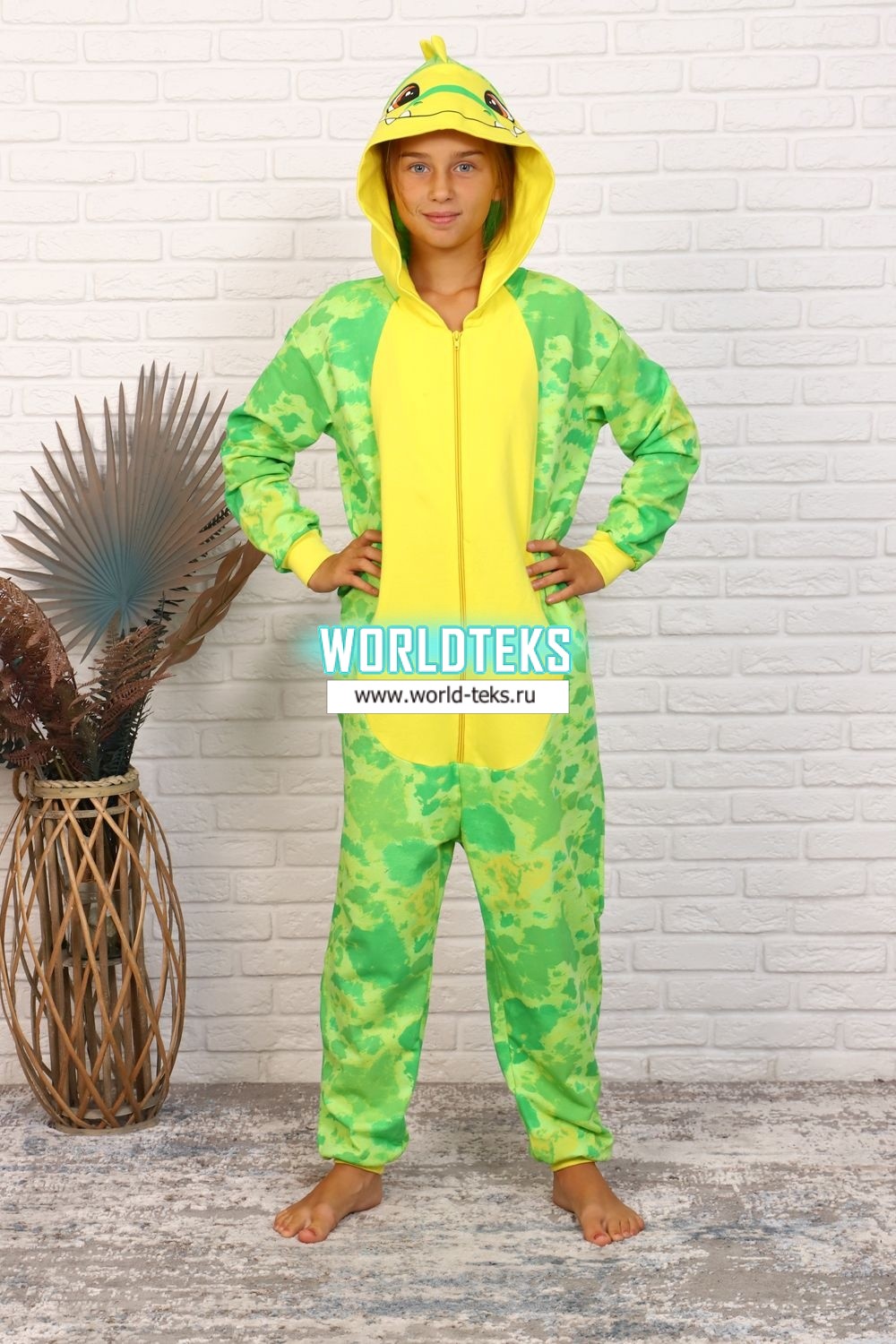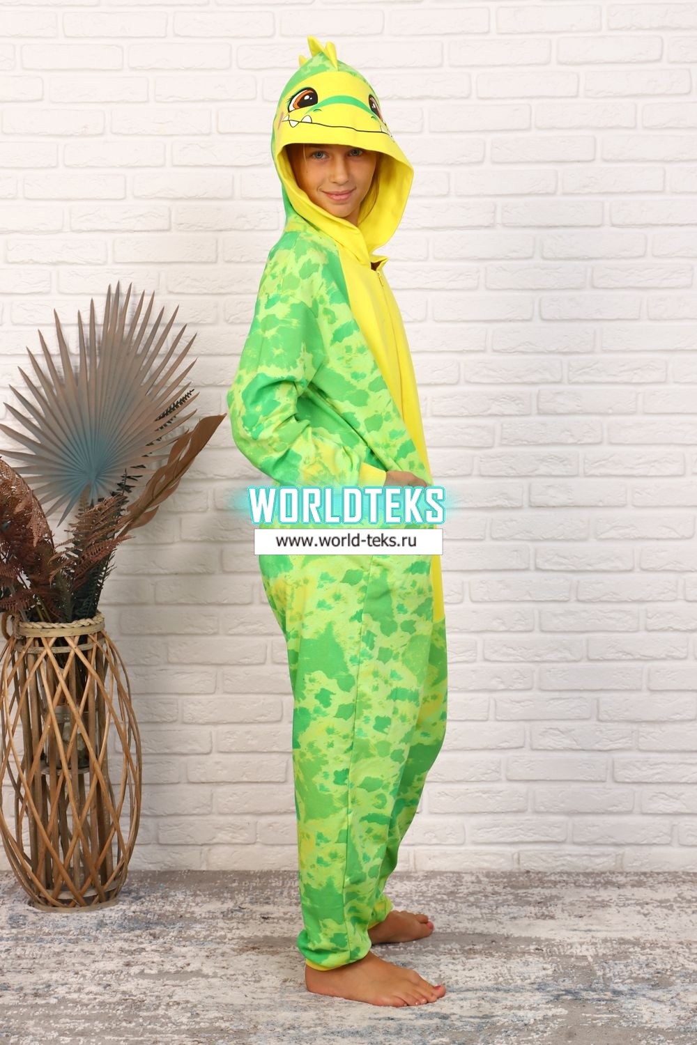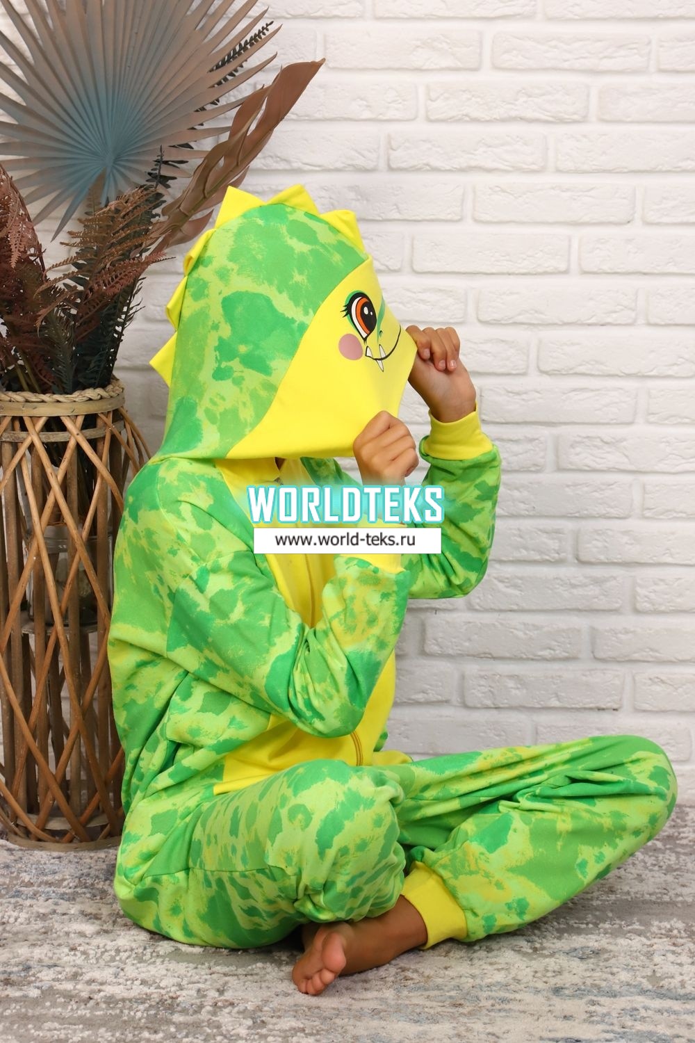 Комбинезон-кигуруми Динозаврик выполнен из футера с начесом (100% хлопок). Это лучший выбор для крутой вечеринки, повседневной одежды и даже для сна. Комбинезон изготовлен из теплого материала, который легко стирается, не линяет, не теряет цвет и классно выглядит в течение долгого времени. Застегивается спереди на молнию. За счет своего свободного кроя не сковывает движений. Очень теплый, мягкий, оригинальный и веселый комбинезон.