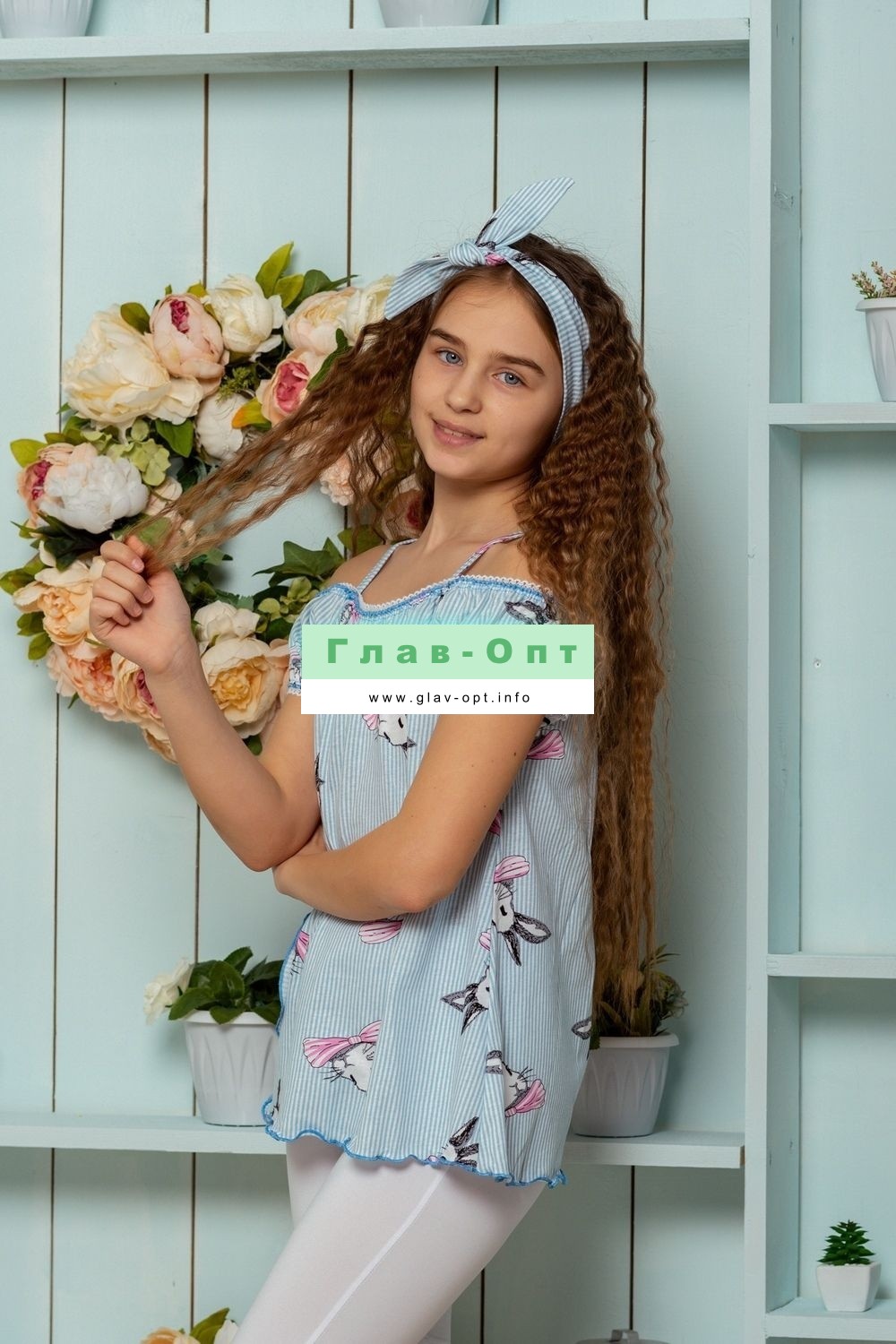 Майка детская летняя для девочек, свободного покроя на тонких бретелях, с накладным кармашком на полочке. По горловине и рукавам настрочена декоративная ажурная резинка. Все срезы в изделии обработаны декоративной краеобметачной строчкой.