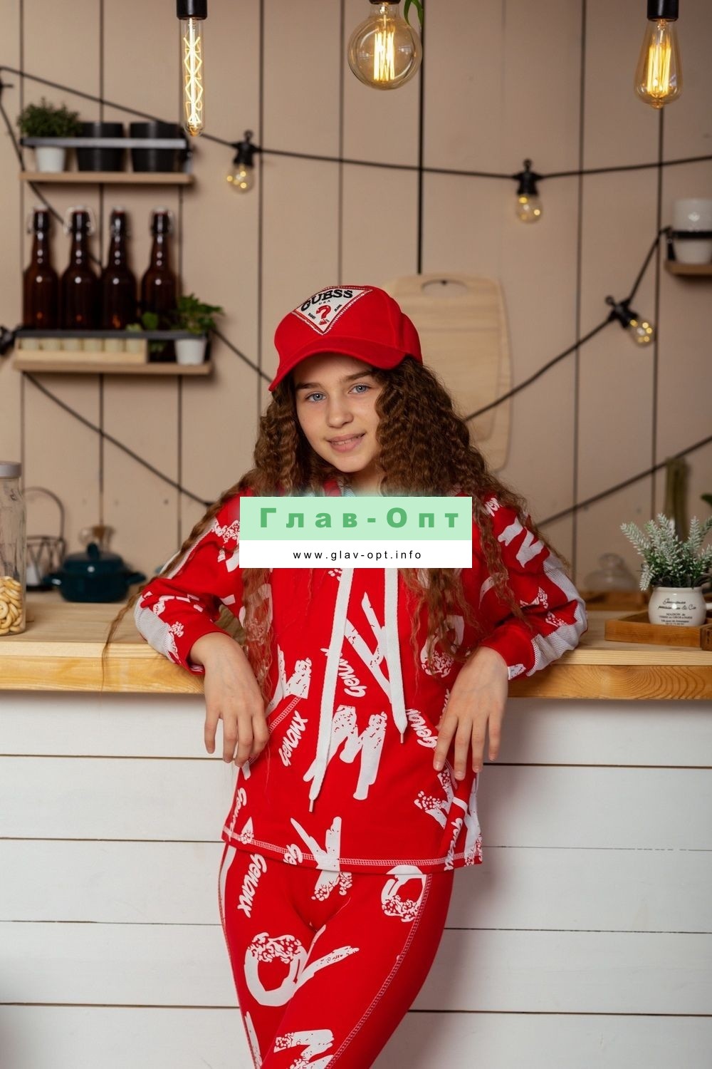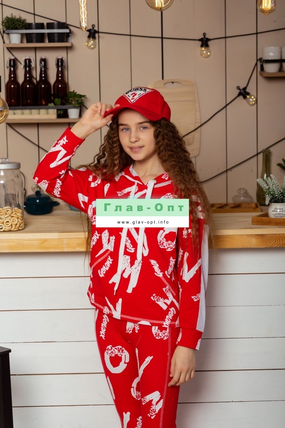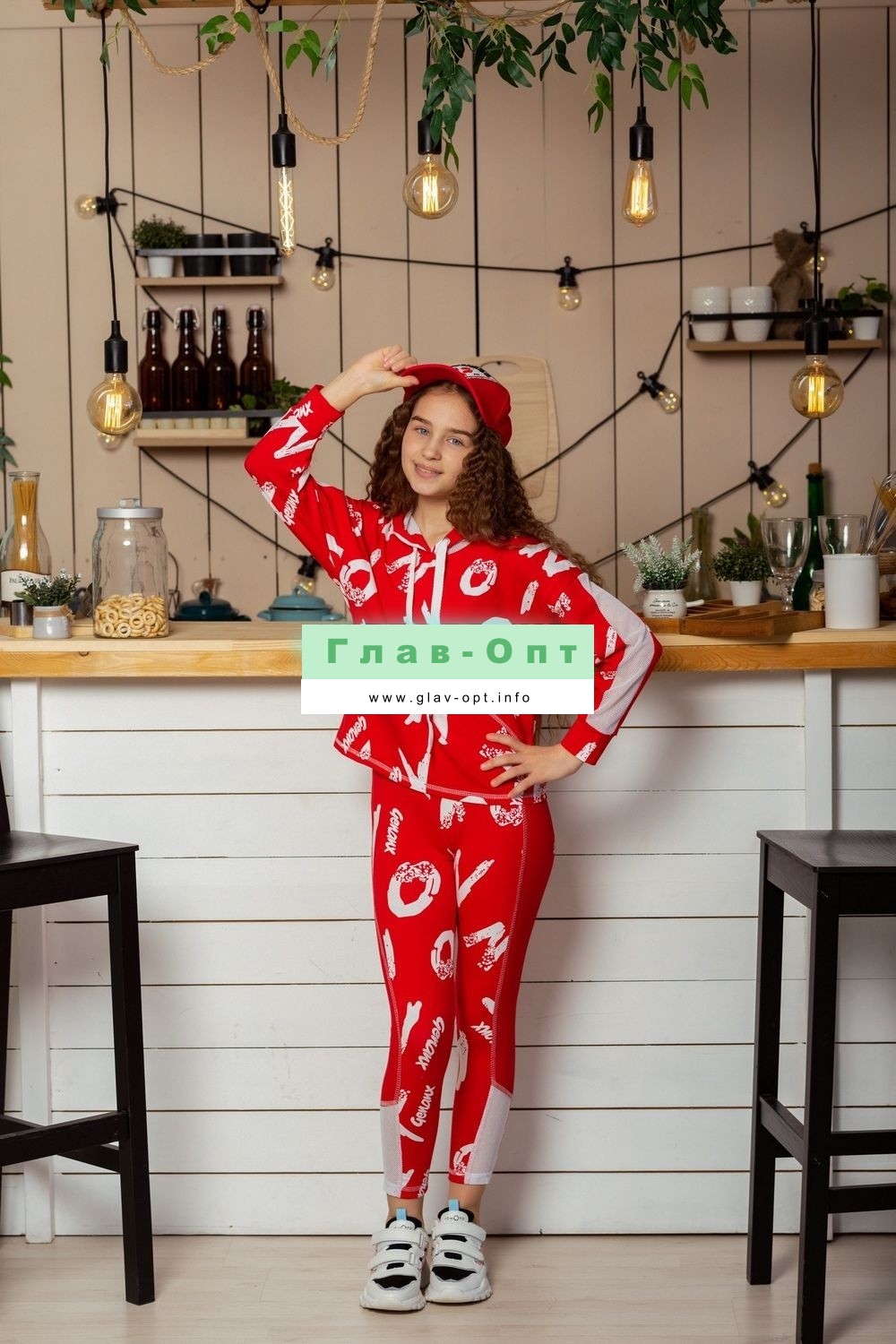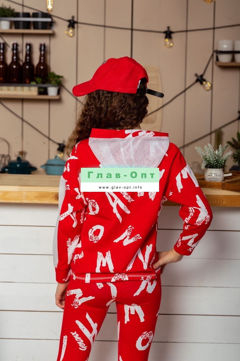 Толстовка прямая, свободная, с капюшоном, с удлиненной спинкой. Рукав длинный, с лампасом из сетки вдоль рукава, на манжете. На полочке расположен карман кенгуру . Можно составить комплект с леггинсами 8231