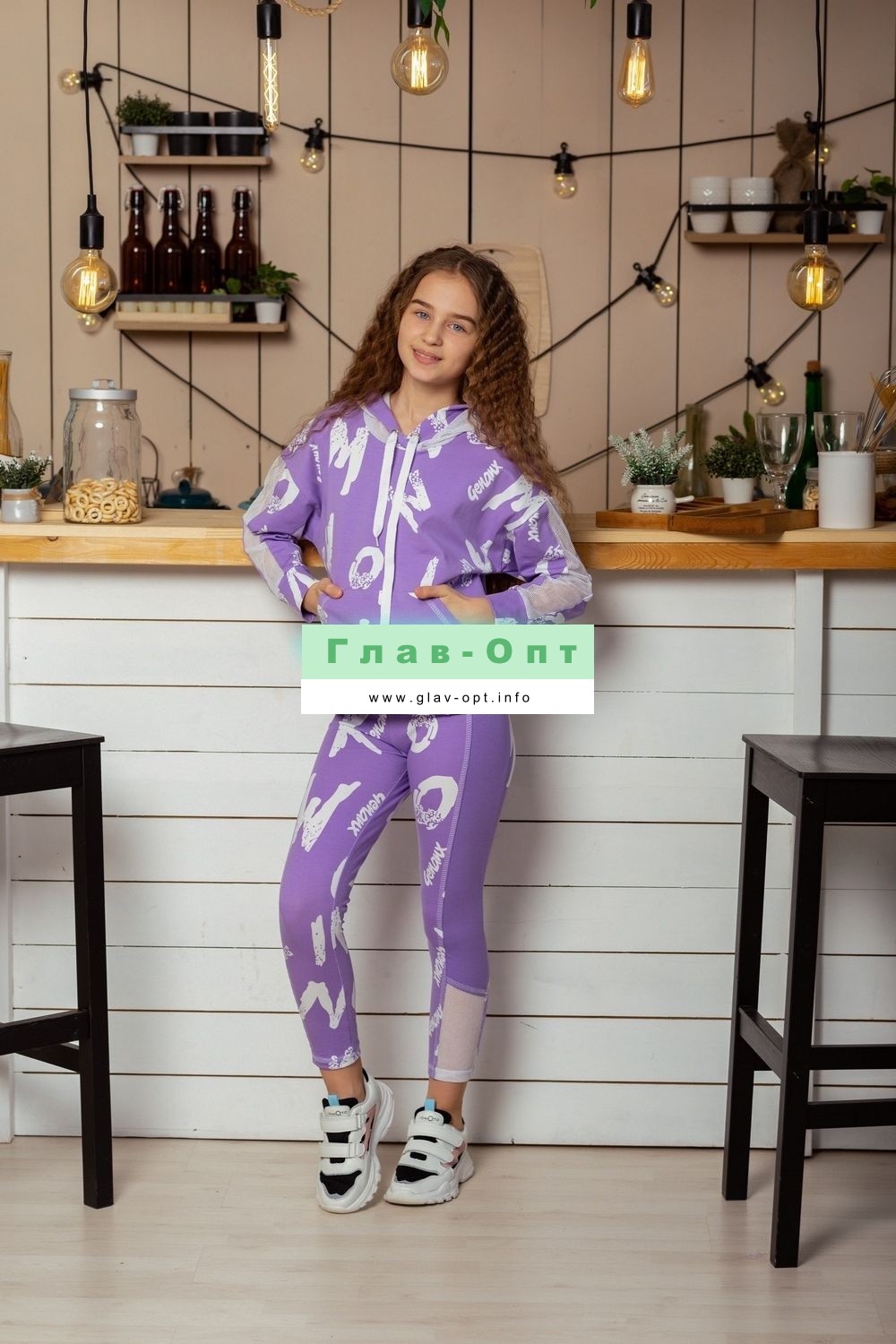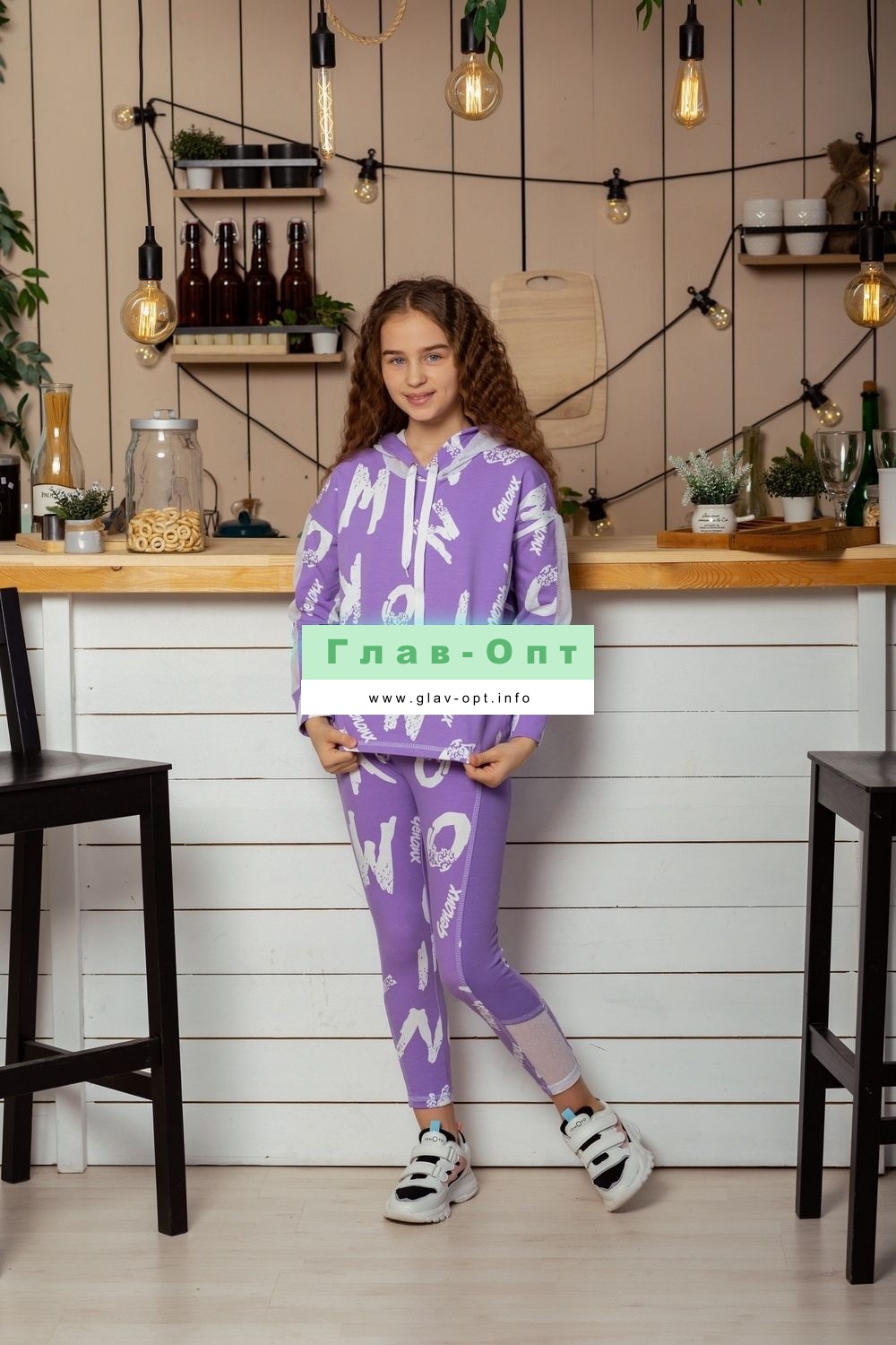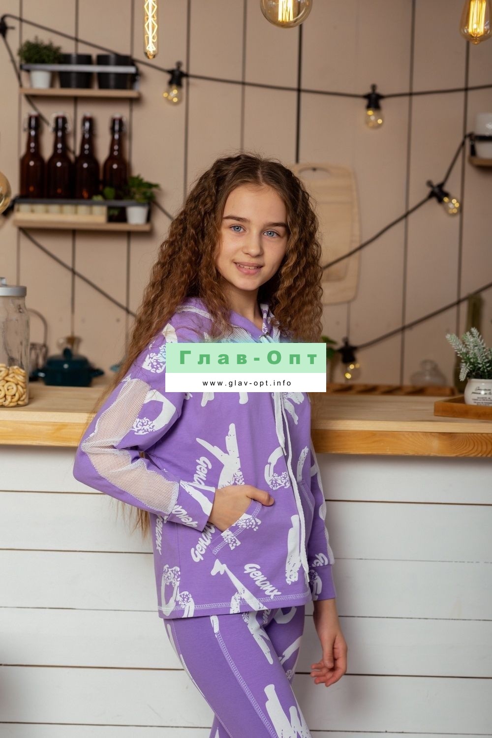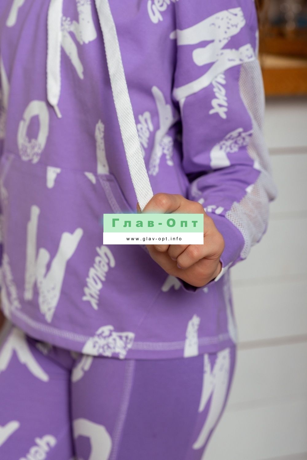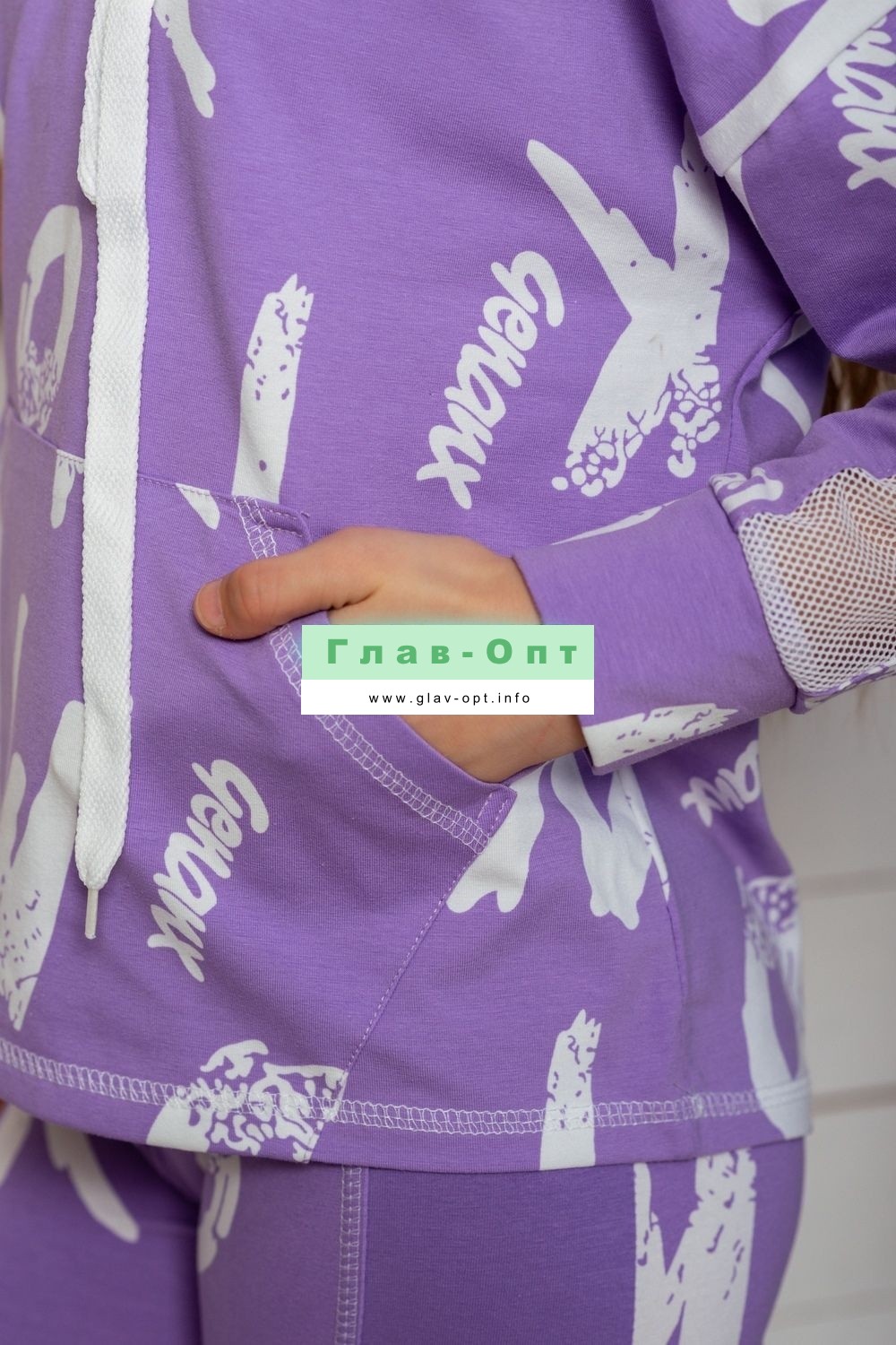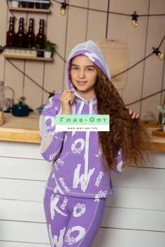 Толстовка прямая, свободная, с капюшоном, с удлиненной спинкой. Рукав длинный, с лампасом из сетки вдоль рукава, на манжете. На полочке расположен карман кенгуру . Можно составить комплект с леггинсами 8231
