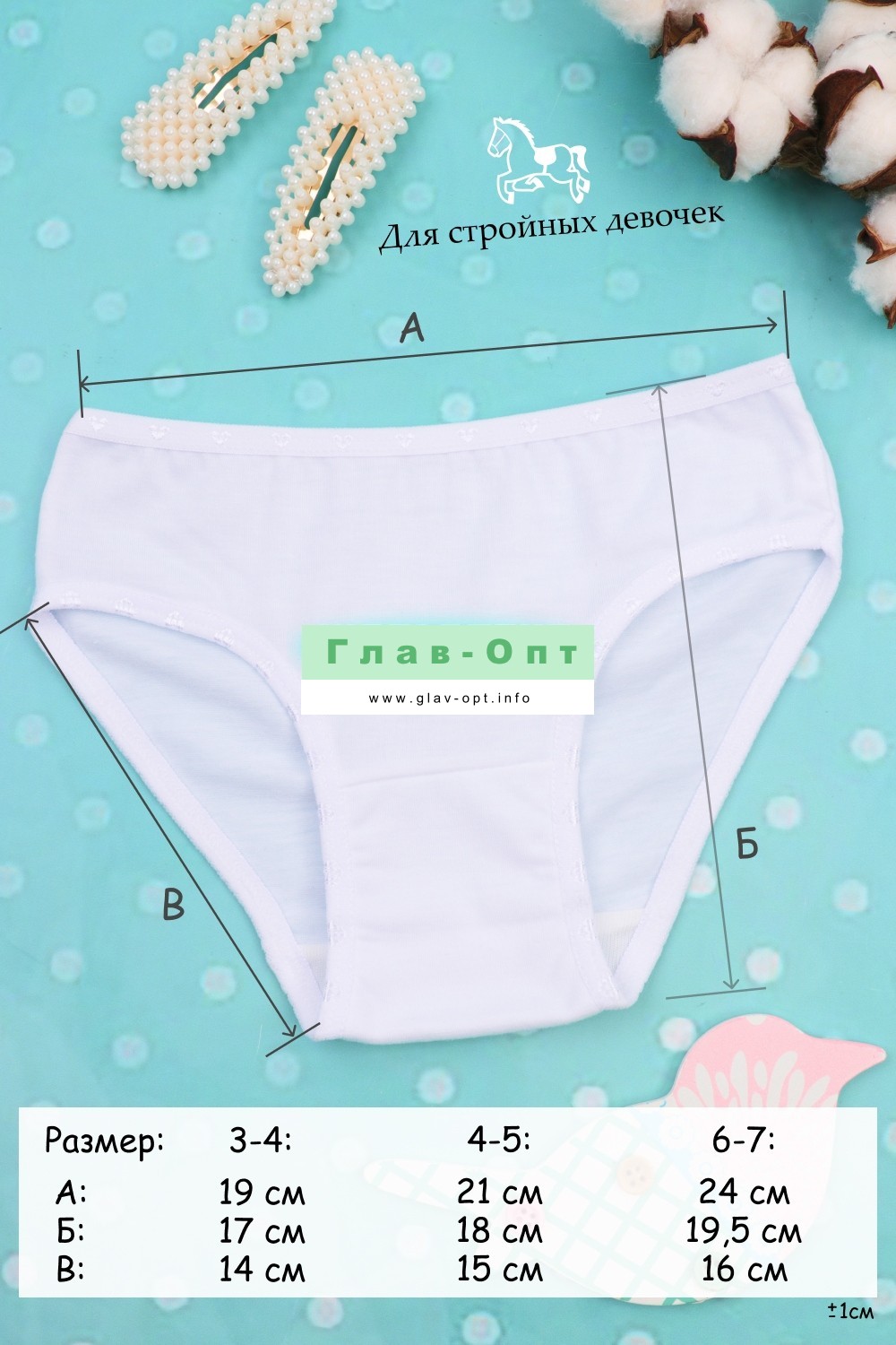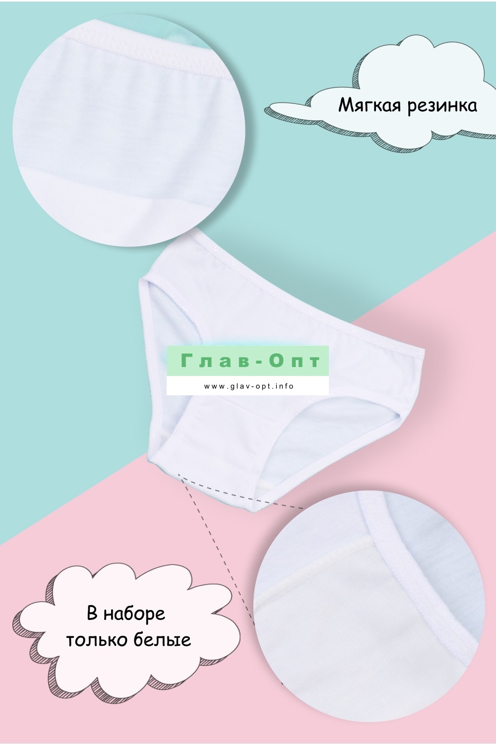 Однотонные трусики представлены в белом цвете, у изделия не жмущая резинка и широкая боковая часть. Трусы отличает высокое качество пошива и аккуратные швы, нежный принт - сердечки, украшающий окантовочную тесьму. Удобные трусики выбирают для ношения под одеждой для детского садика или школьной формой. Ребенку будет комфортно в них во время прогулки или занятий спортом.