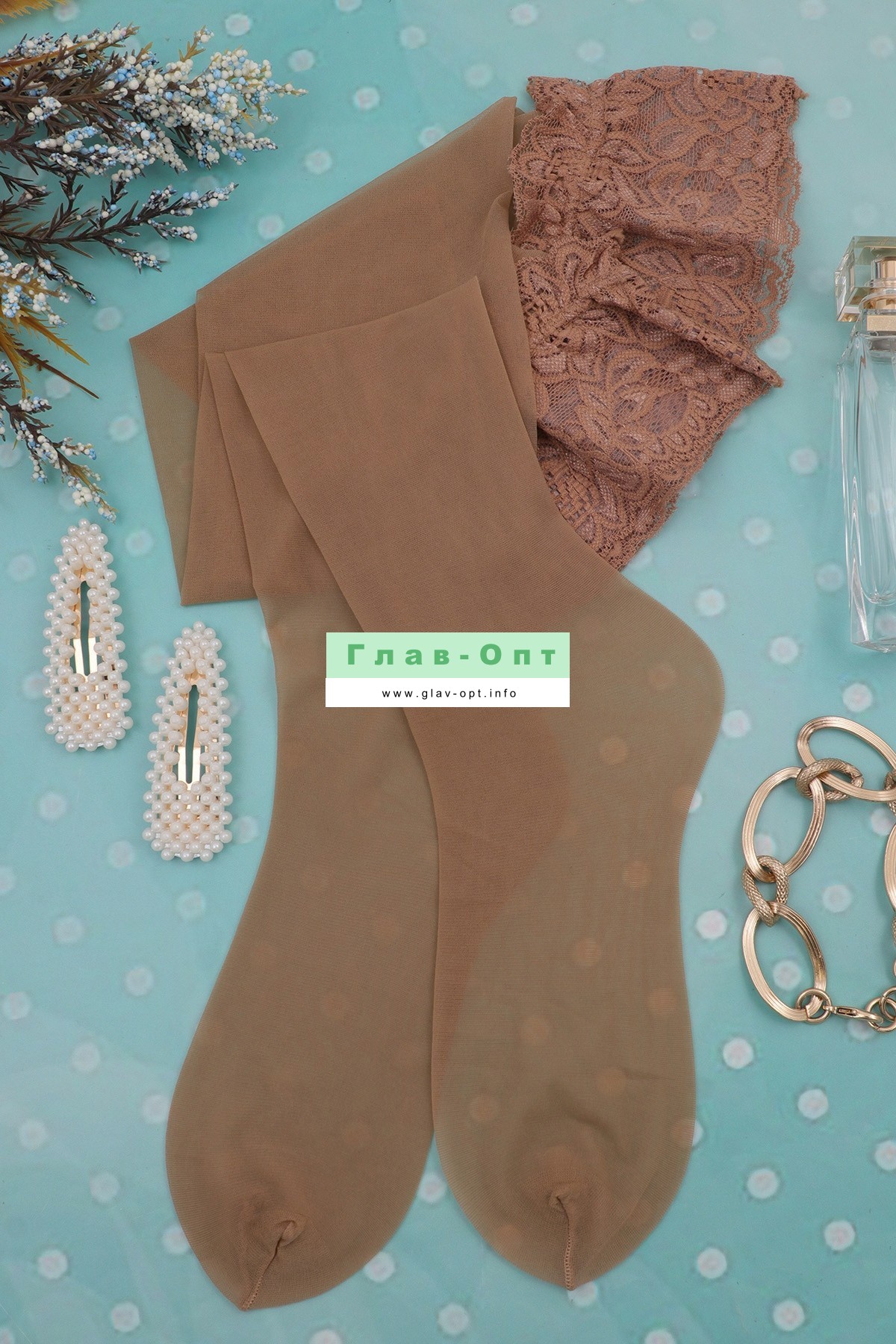 Элегантные, шелковистые чулки с кружевной фиксирующей резинкой на силиконовой основе.