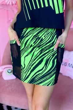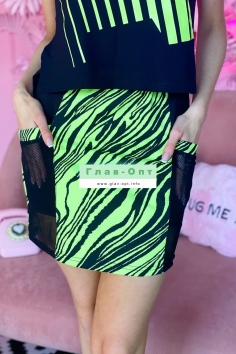 Юбка полуприлегающего силуэта, длиной выше колена, с карманами на уровне середины бедра, на эластичном поясе. Боковой карман выполнен из сетки.