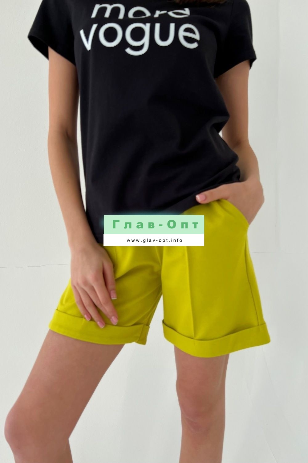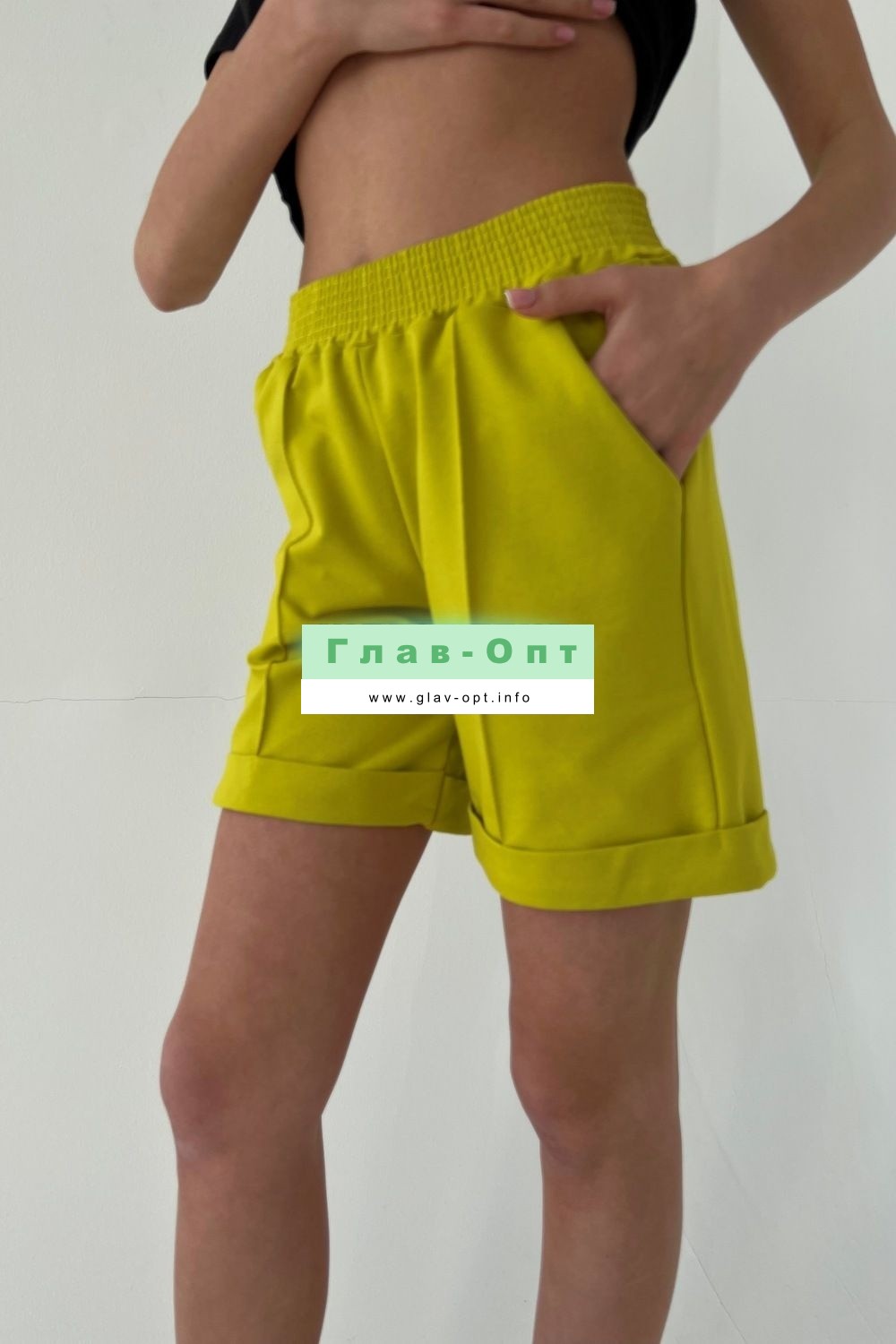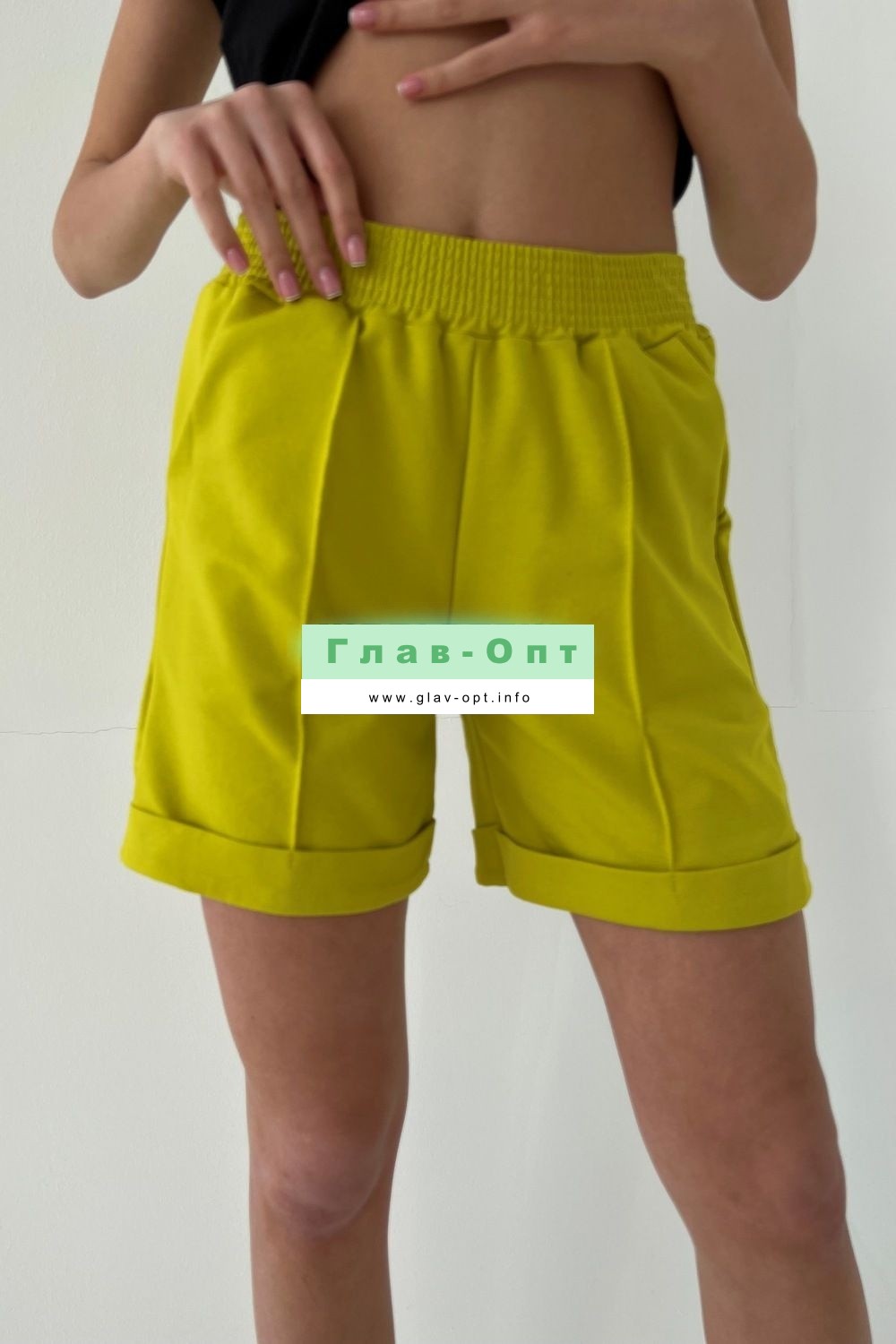 Шорты прямые, со стрелками на передних половинках, с карманами, на поясе, с манжетом.