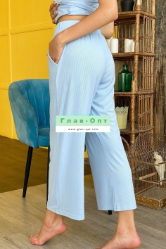 Брюки свободные, прямые, длинной 7/8, с карманами, на поясе.