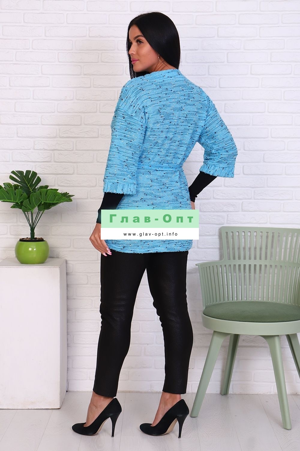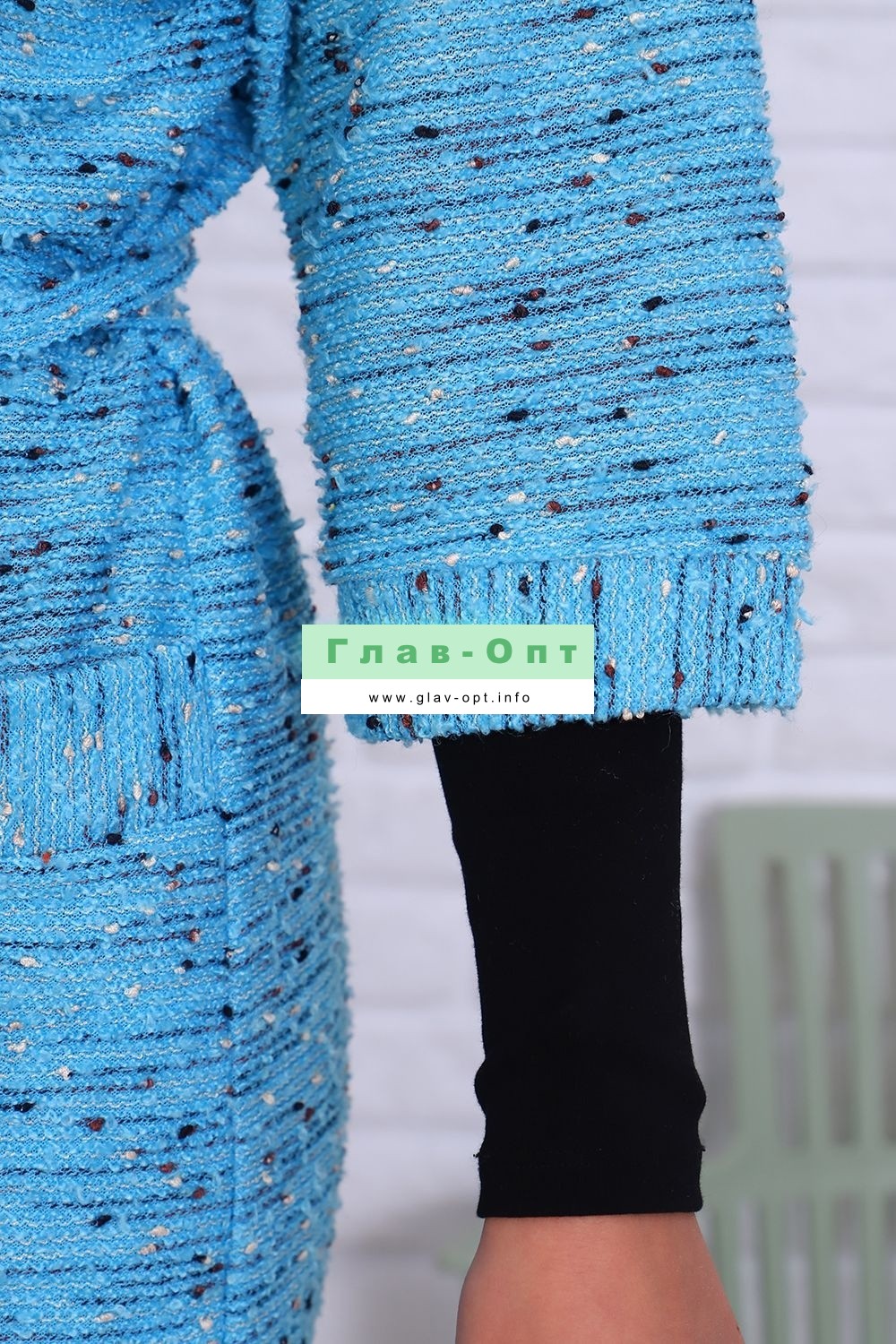 Стильный жакет из мягкого трикотажа БУКЛЕ с цветными вкраплениями. Модель свободного кроя с глубоким вырезом, передние полочки, накладные карманы и рукав гармонично оформлены широкой планкой, его можно носить как с поясом? так и без него. Жакет - это незаменимая вещь в гардеробе каждой современной девушки. Его простой крой, необычный, универсальный дизайн и удобный фасон не обойдут ни одну модницу стороной. Трикотаж БУКЛЕ приятный к телу, не колется.