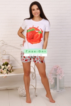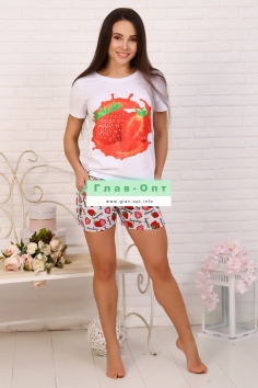 Костюм футболка + шорты. На полочке изделия яркий принт.