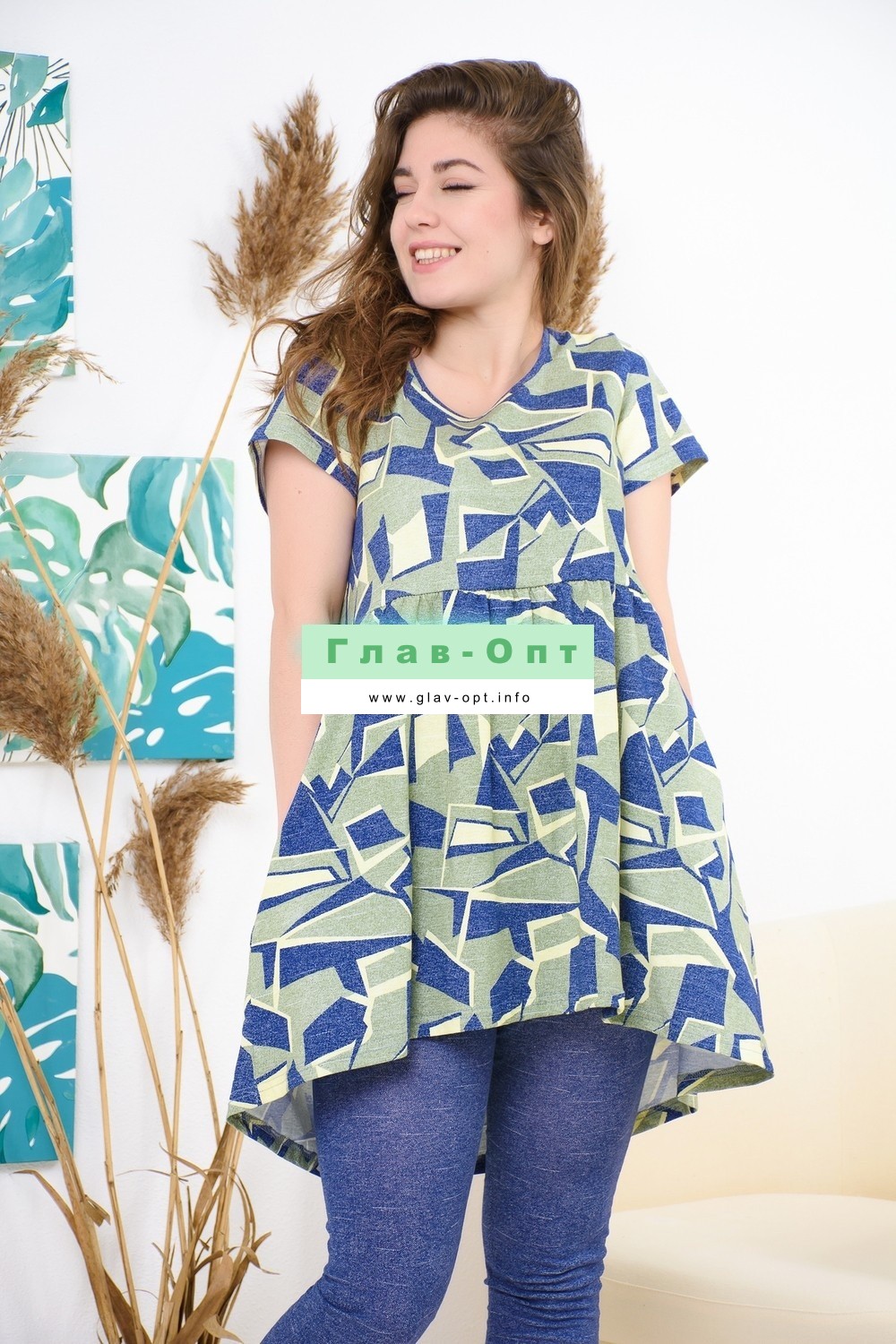 Туника изготовлена из натуральной ткани (хлопка) - самый здоровый и естественный вариант. Модель свободного покроя не стеснят движений и будет ласково касаться вашего тела. Лининя талии завышена, в боковых швах спрятаны карманы. Линия подола асимметричная.