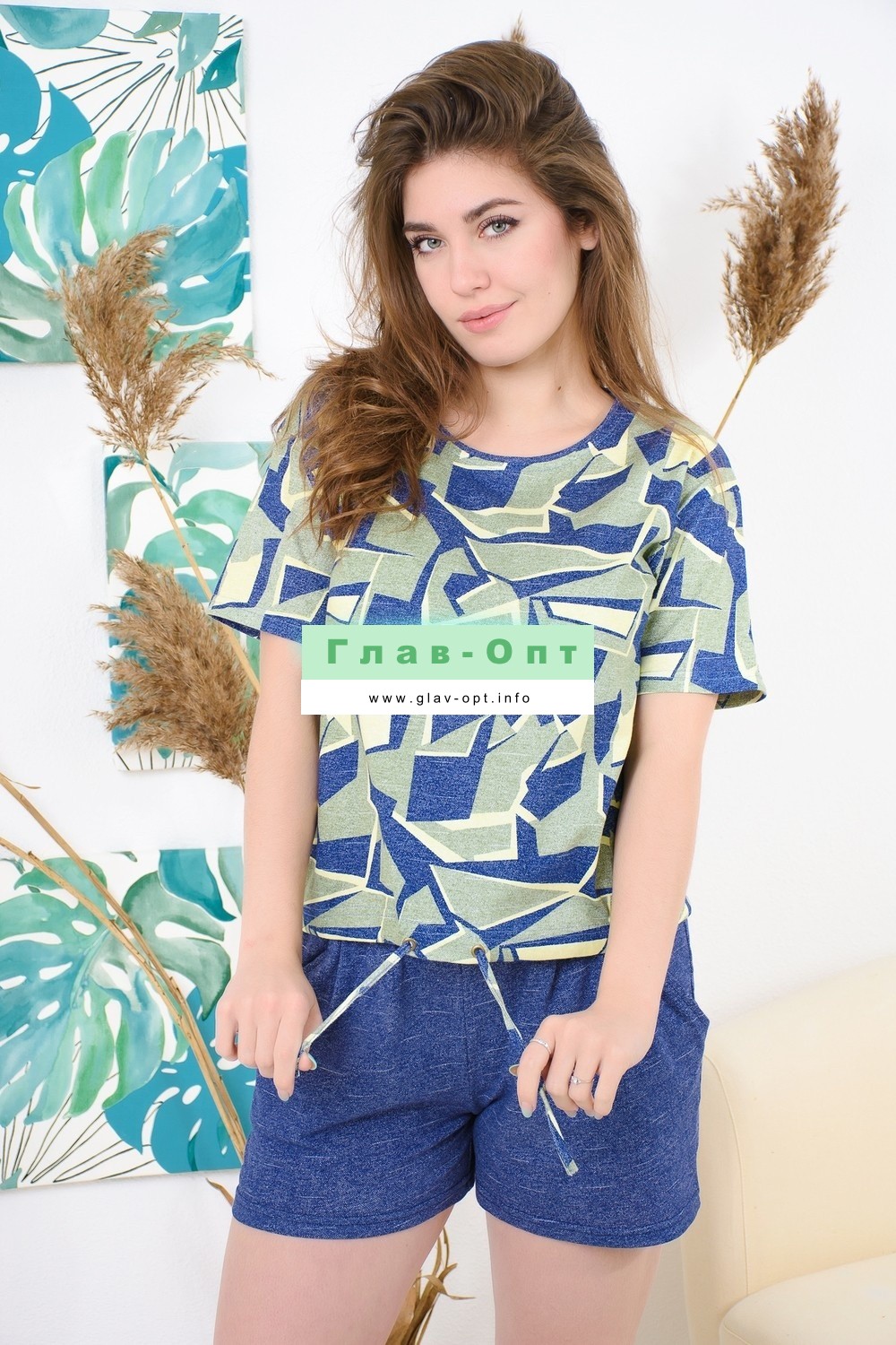 Милый и женственный хлопковый костюм с шортиками. Туника свободная, в области бедер вшита утягивающая кулиска. Шортики с защипами, что способствует более свободному и комфортному движению.