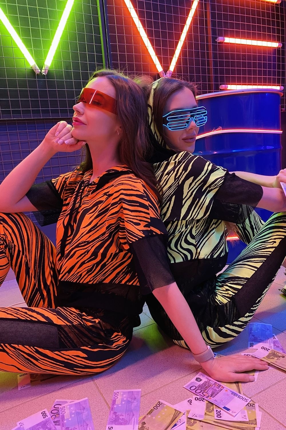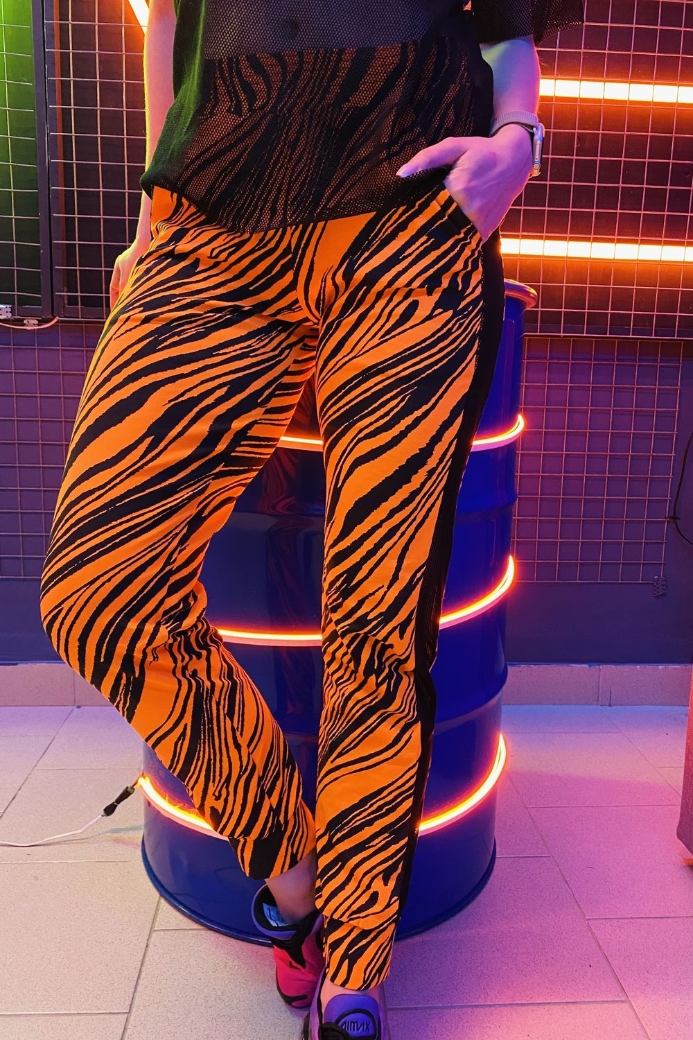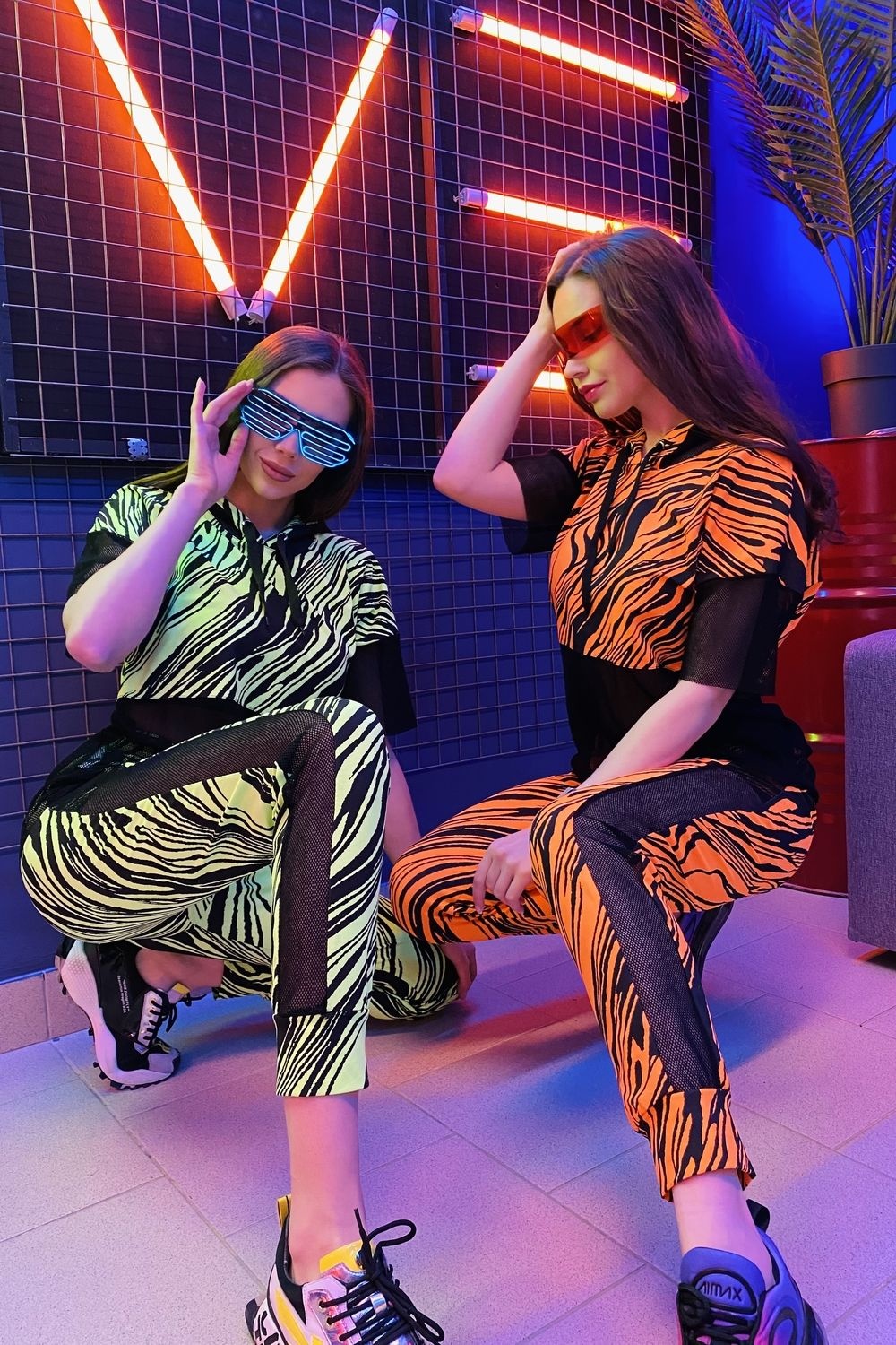 Комплект состоит из туники и брюк. Брюки на поясе, с карманами, с лампасами из сетки вдоль боковых швов, на манжете по низу. Туника свободная, с капюшоном из сетки, с удлиненной спинкой, длиной до середины бедра. Рукав короткий, из сетки. Нижняя часть полочки и спинки выполнены из сетки.