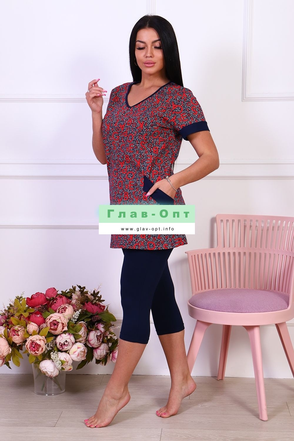 Женский костюм полуприлегающего силуэта состоит из туники и бриджей. 100% дышащий хлопок туники и эластичная вискоза бриджей несут в себе удобство при носке, гигроскопичность и износостойкость. V-образной вырез горловины придаёт изделию женственный вид. Для удобства туника имеет вместительные накладные карманы и втачные рукава с манжетами. Рельефы на полочке изделия создают идеальную посадку и безупречный внешний вид. Бриджи на резинке с высокой посадкой. В костюме такого плана Вы будете чувствовать себя комфортно как дома, так и на любимой даче.