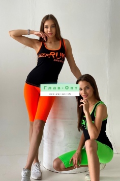 Майка-борцовка прилегающего силуэта, средней длины, с округлой горловиной. В верхней части спинки расположена вставка из сетки. Горловина и проймы майки обработаны бейкой из отделочного полотна.