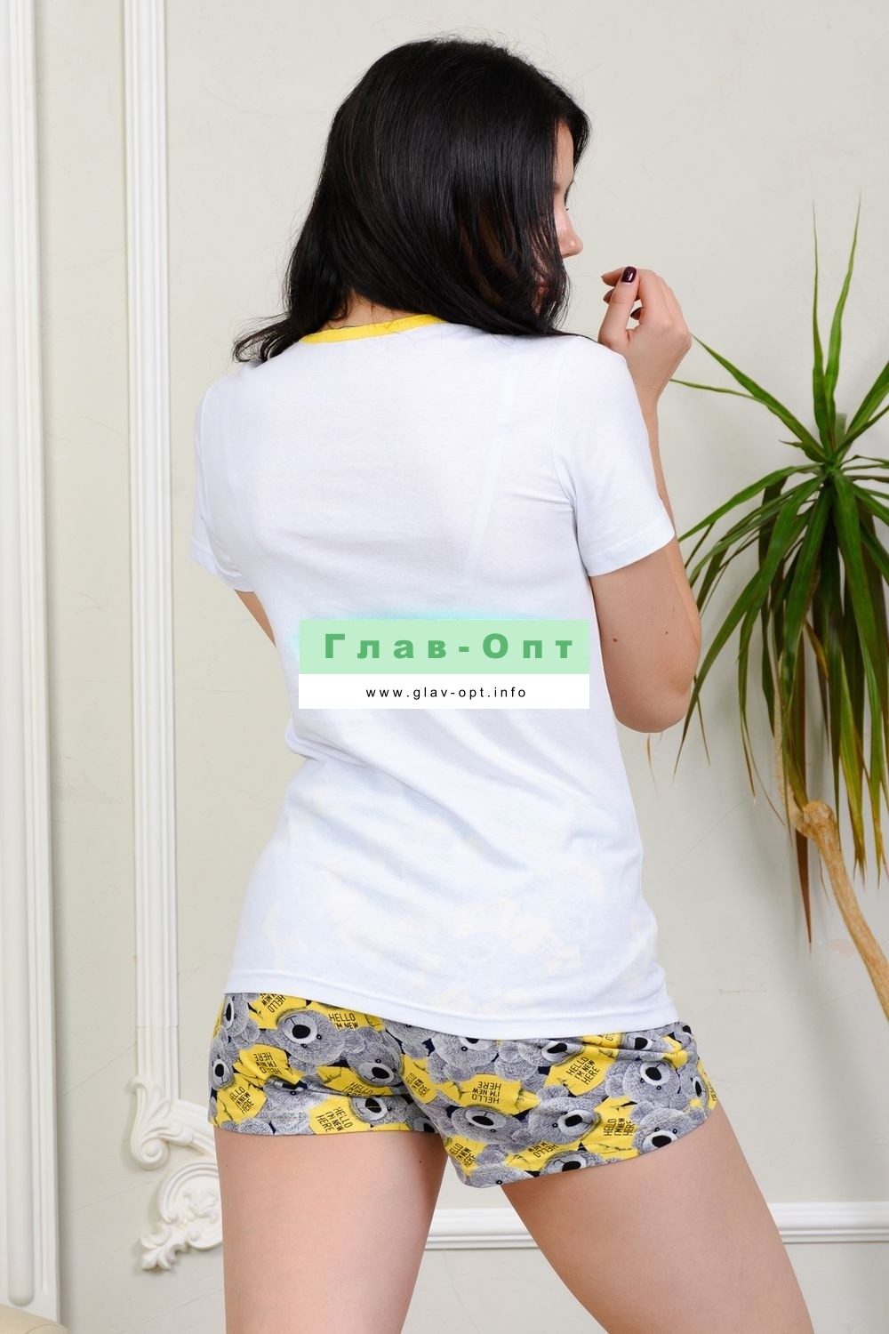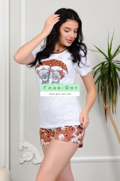 Пижама с шортами на каждый день. Свободные шортики с карманами, на талии заложены по две мягкие складки с каждой стороны. Футболка из мягкого трикотажа, милый мимишный принт