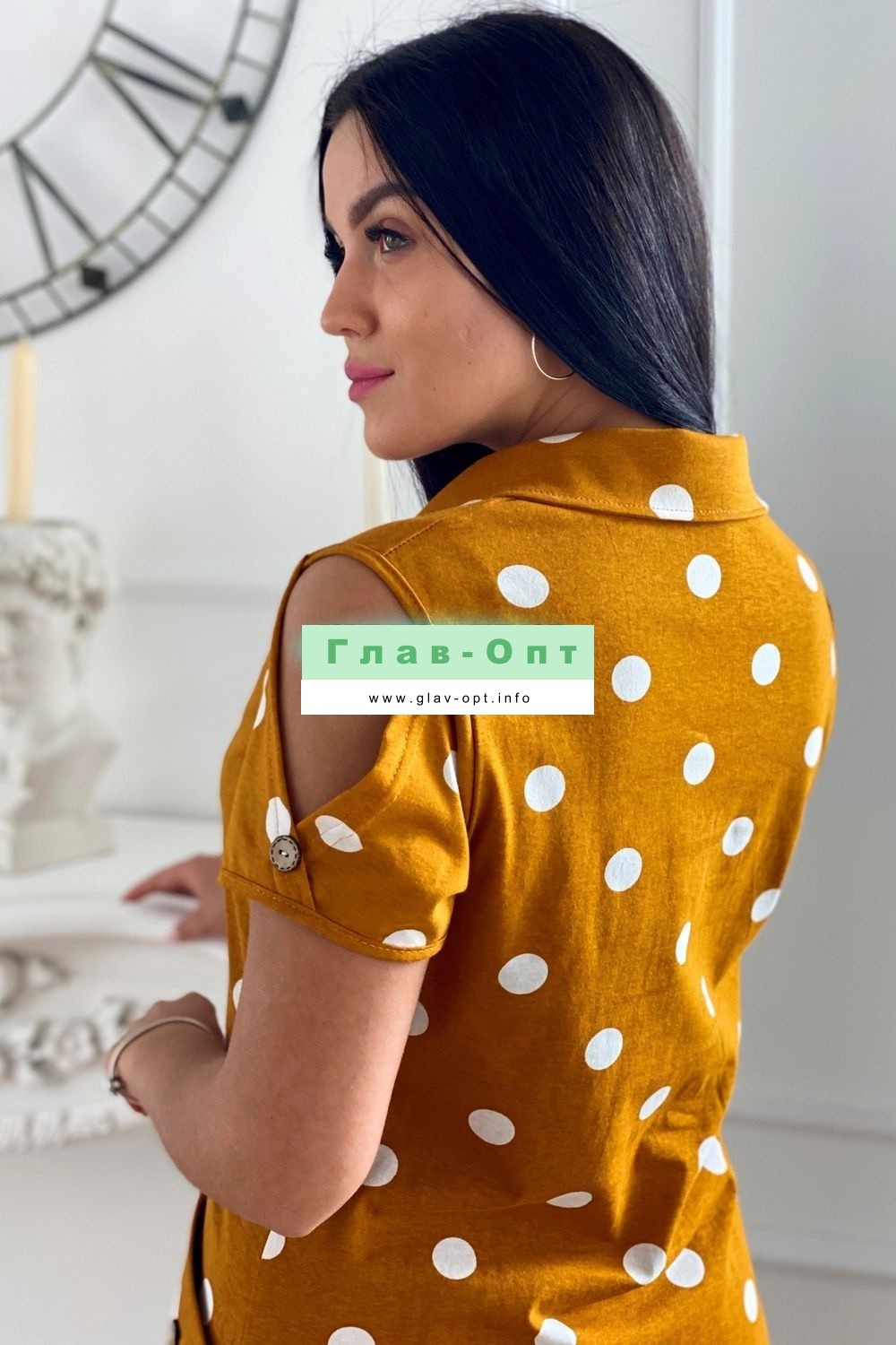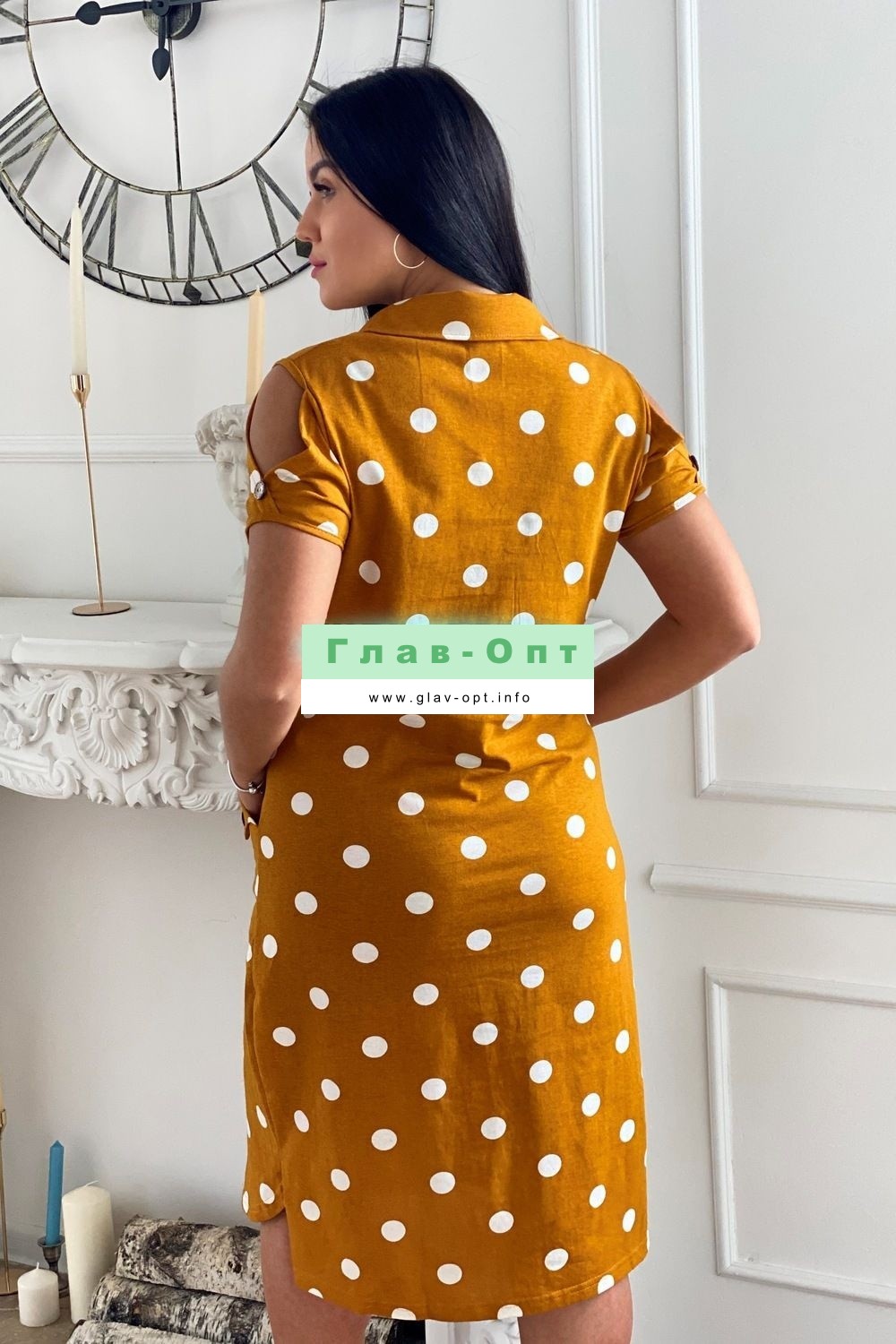 Платье женское полуприлегающего силуэта с застежкой поло .