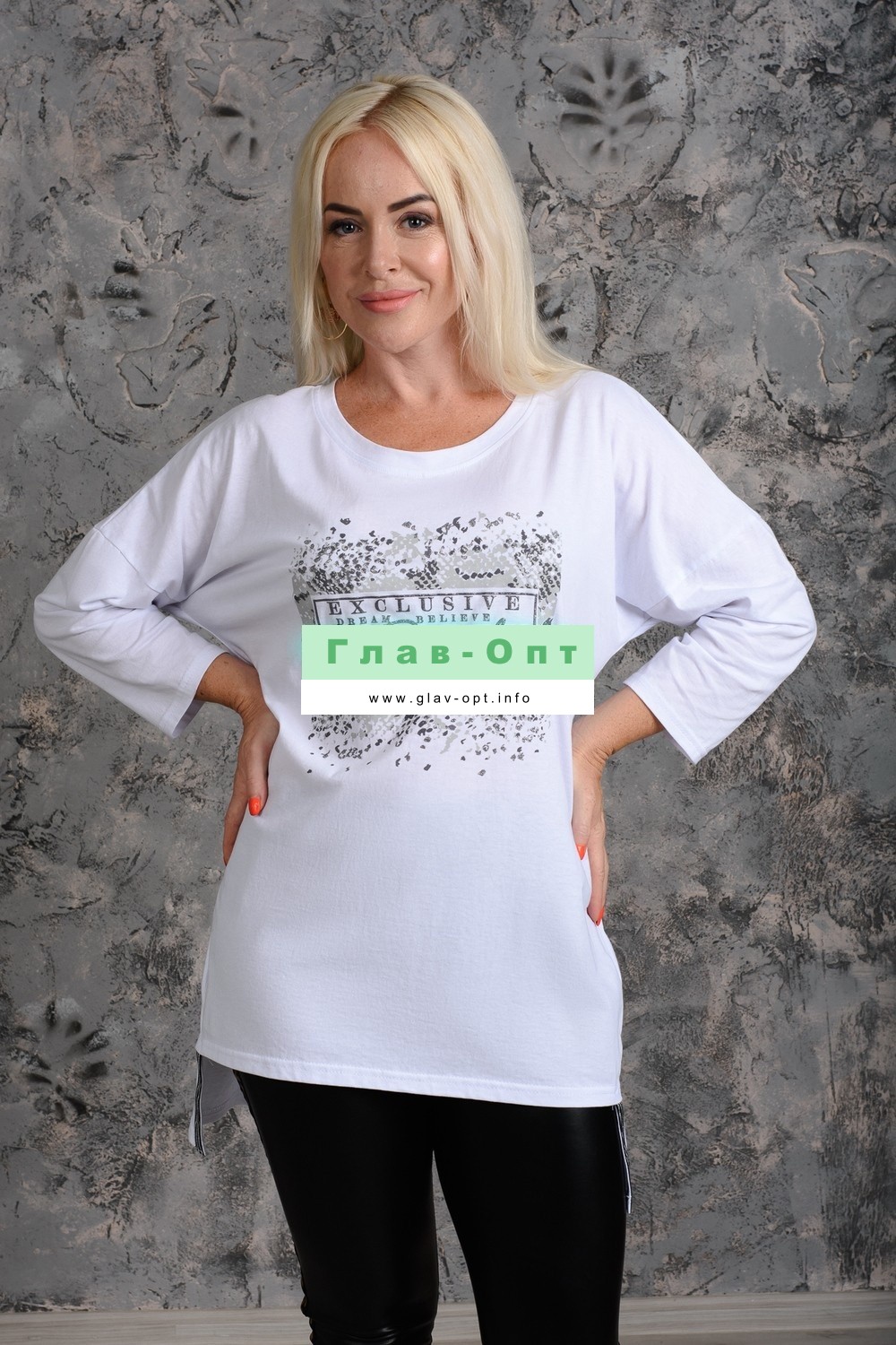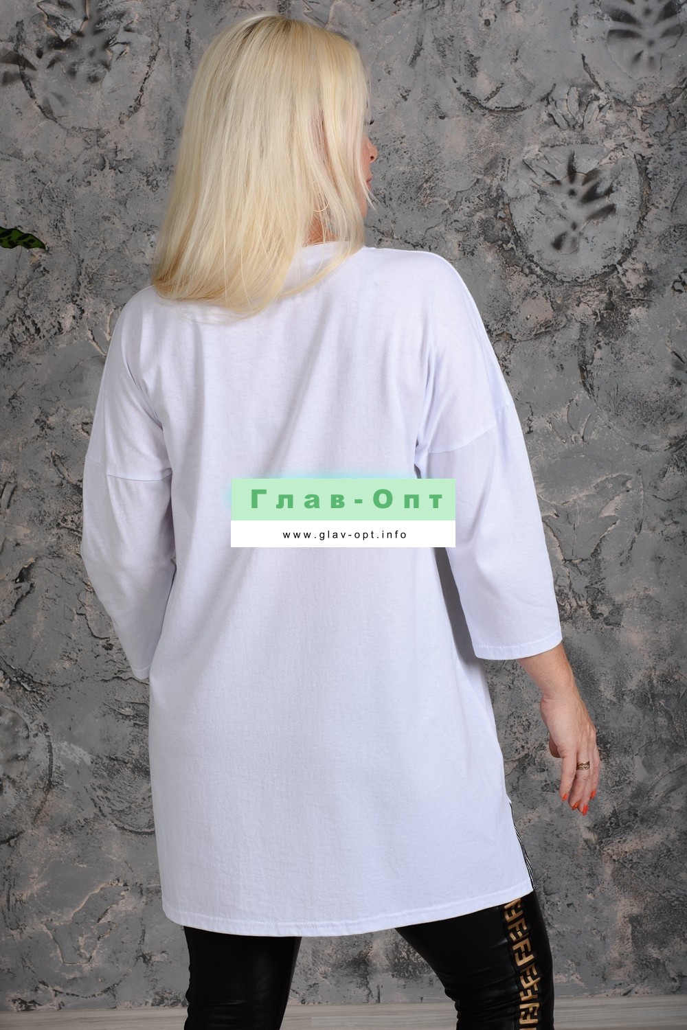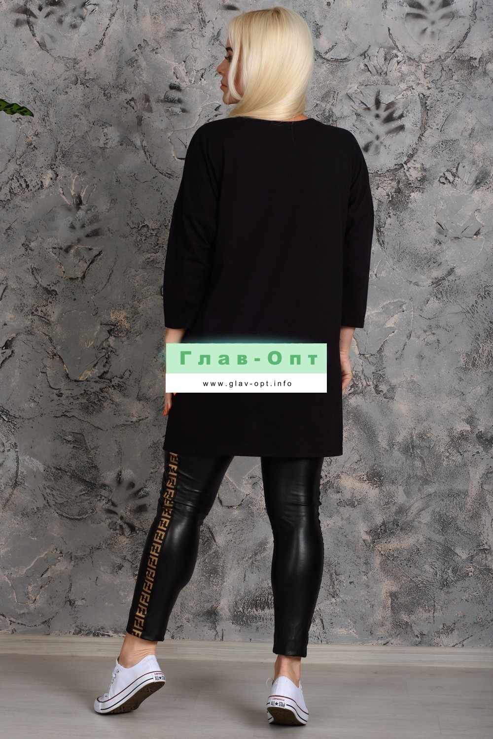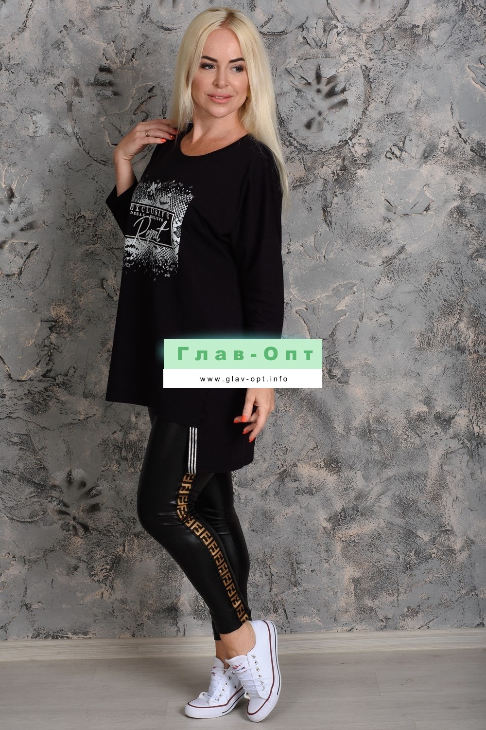 Туника женская. На полочке принт. По низу изделия отделка – тесьма.