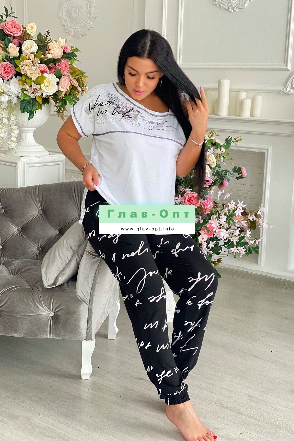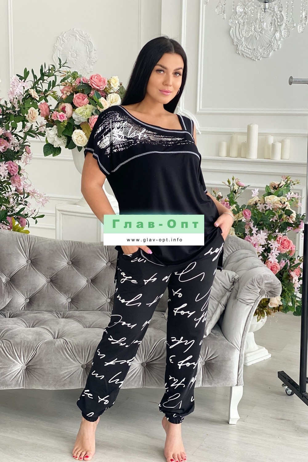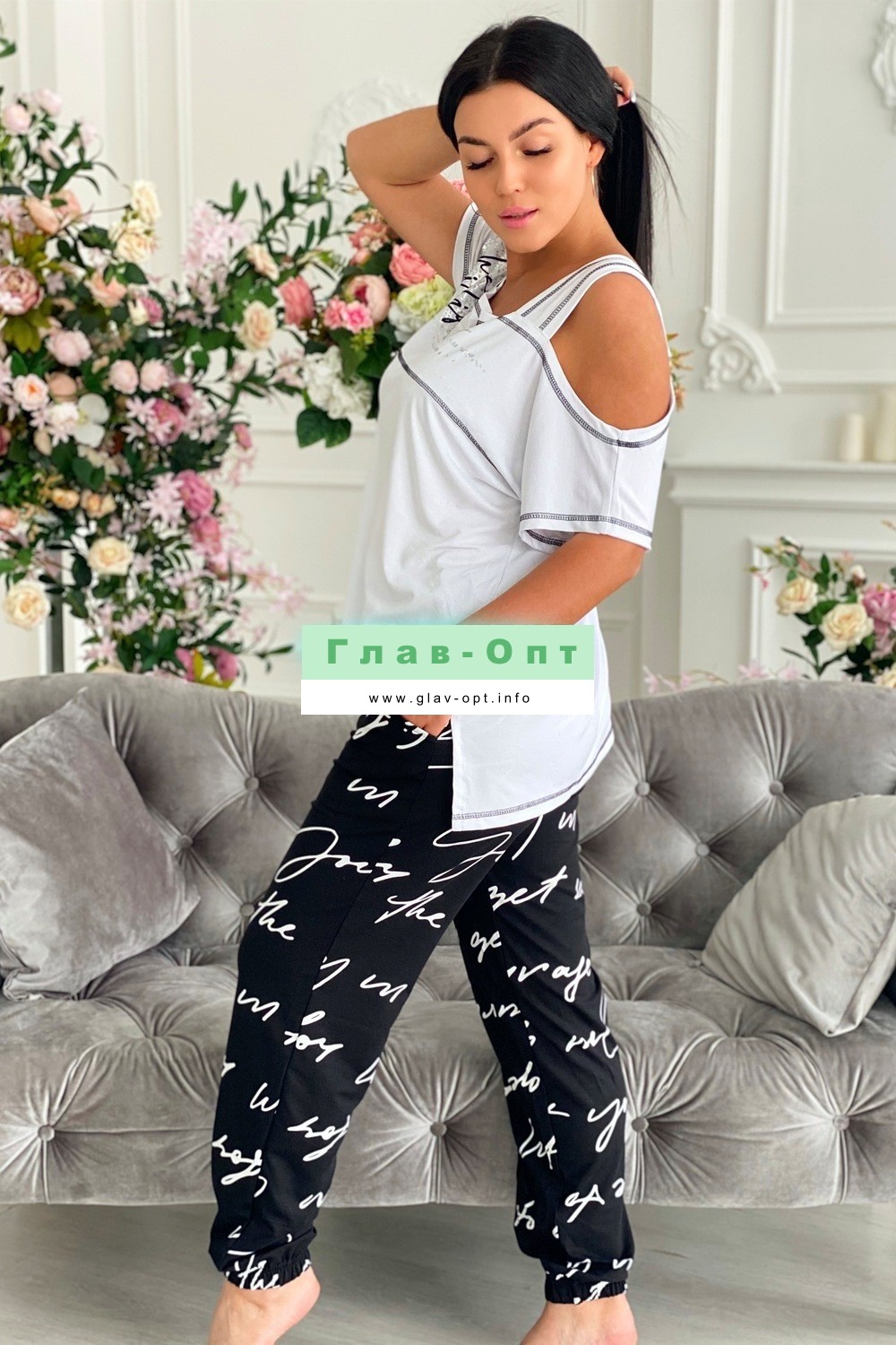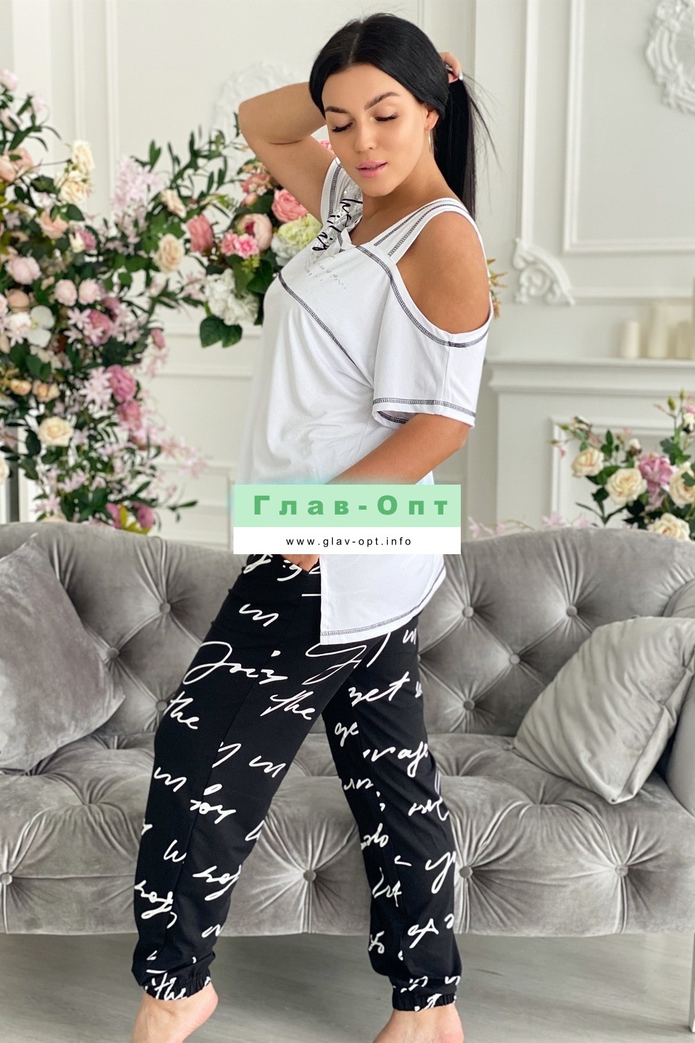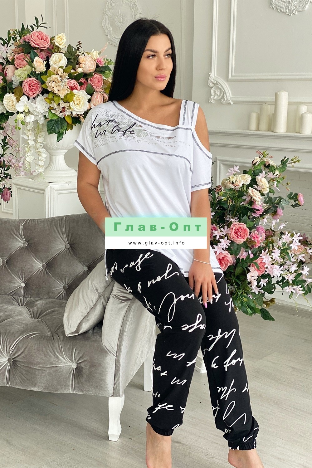 Туника женская полуприлегающего силуэта. Рукав цельнокроенный короткий, с одной стороны бретель на плече, в боковых швах разрезы. В верхней части полочки модный принт.